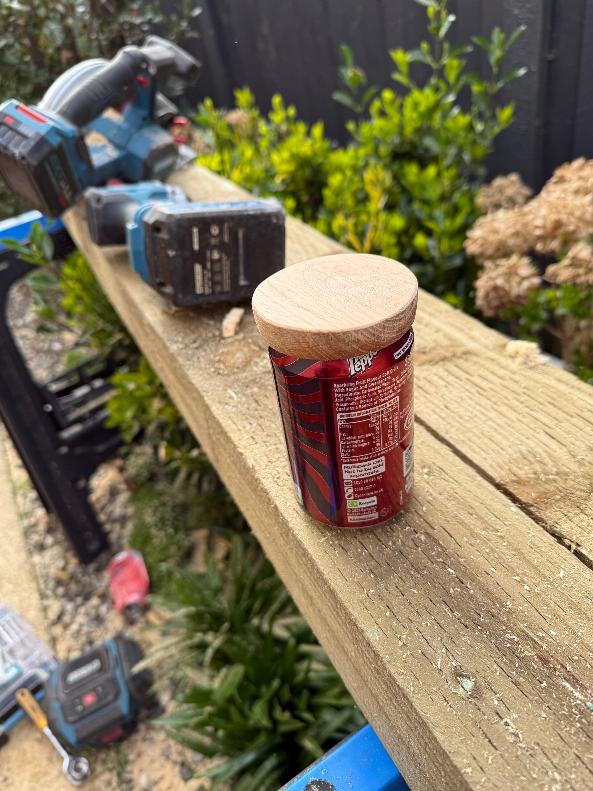 Sip Shield is a handcrafted solid Oak can cover designed to sit neatly over the rim of a standard drinks can, helping keep unwanted debris out while you work or relax.